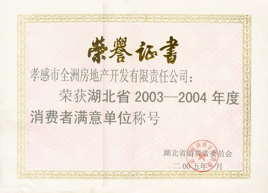 05年湖北省2003-2004消費(fèi)都滿意單位