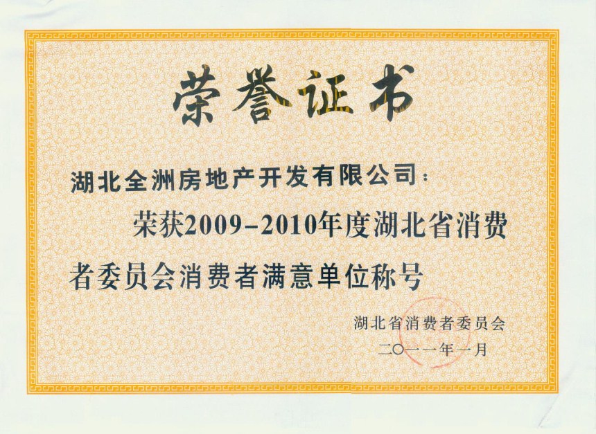 11年2009-2010年度湖北省消費者委員會消費者滿意單位