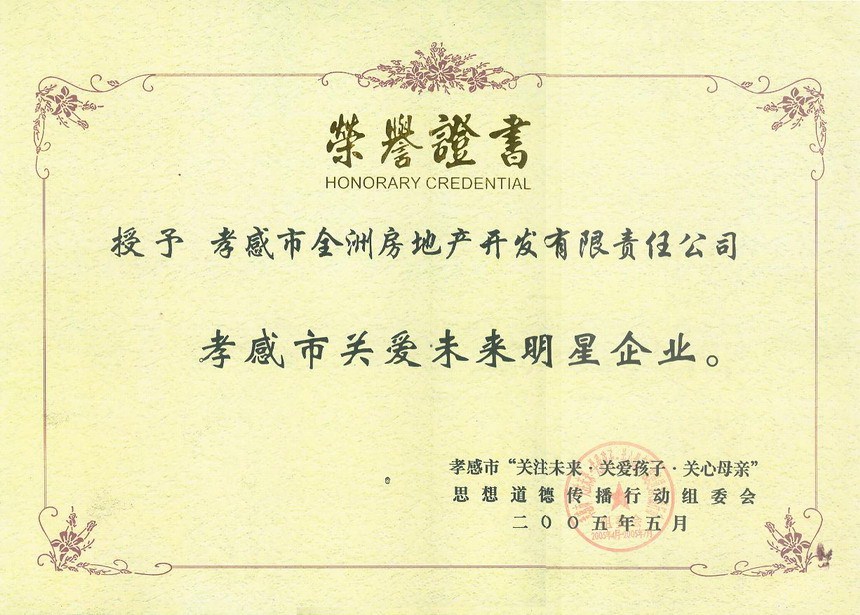 05年孝感市關(guān)愛(ài)未來(lái)明星企業(yè)